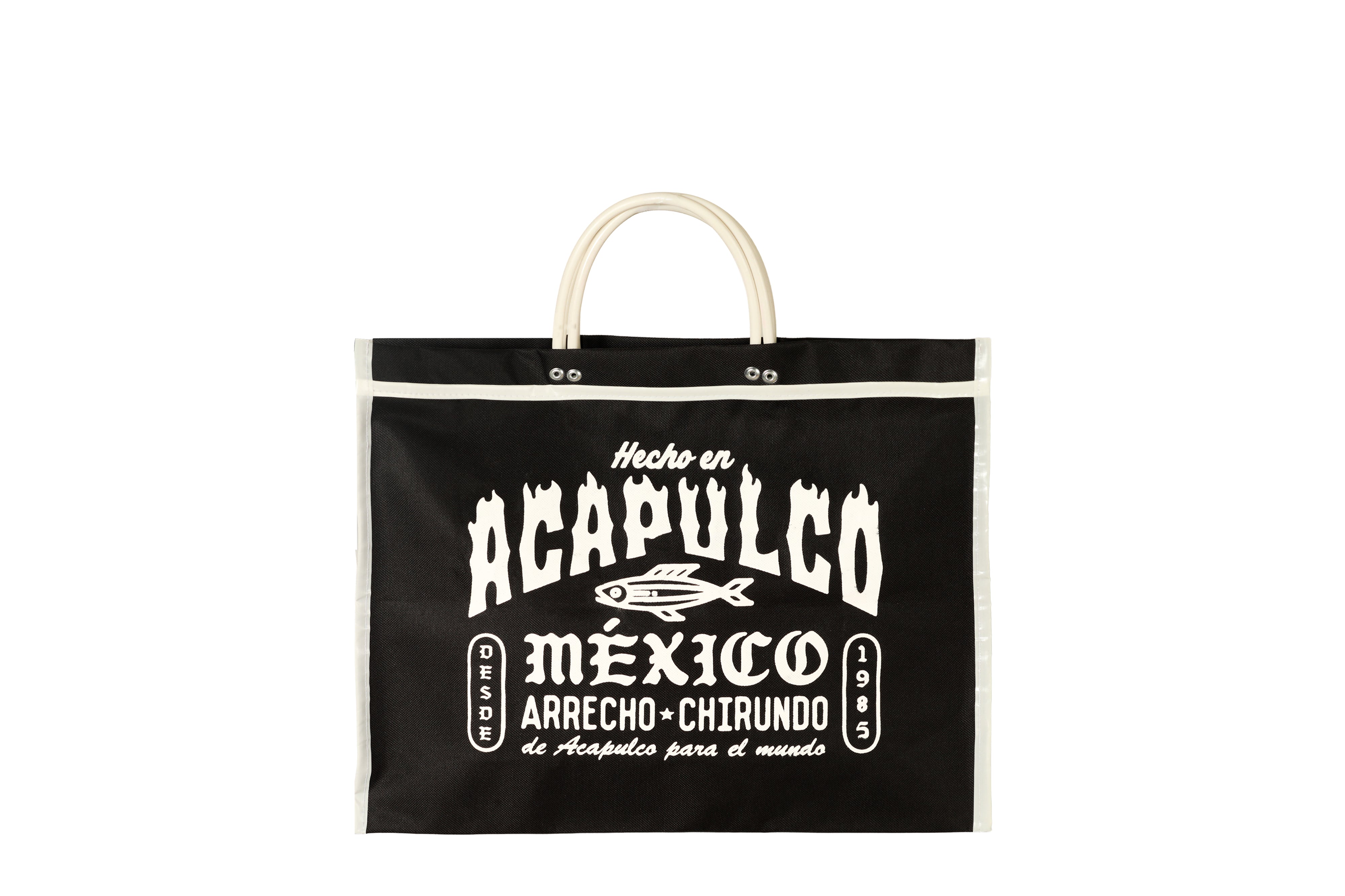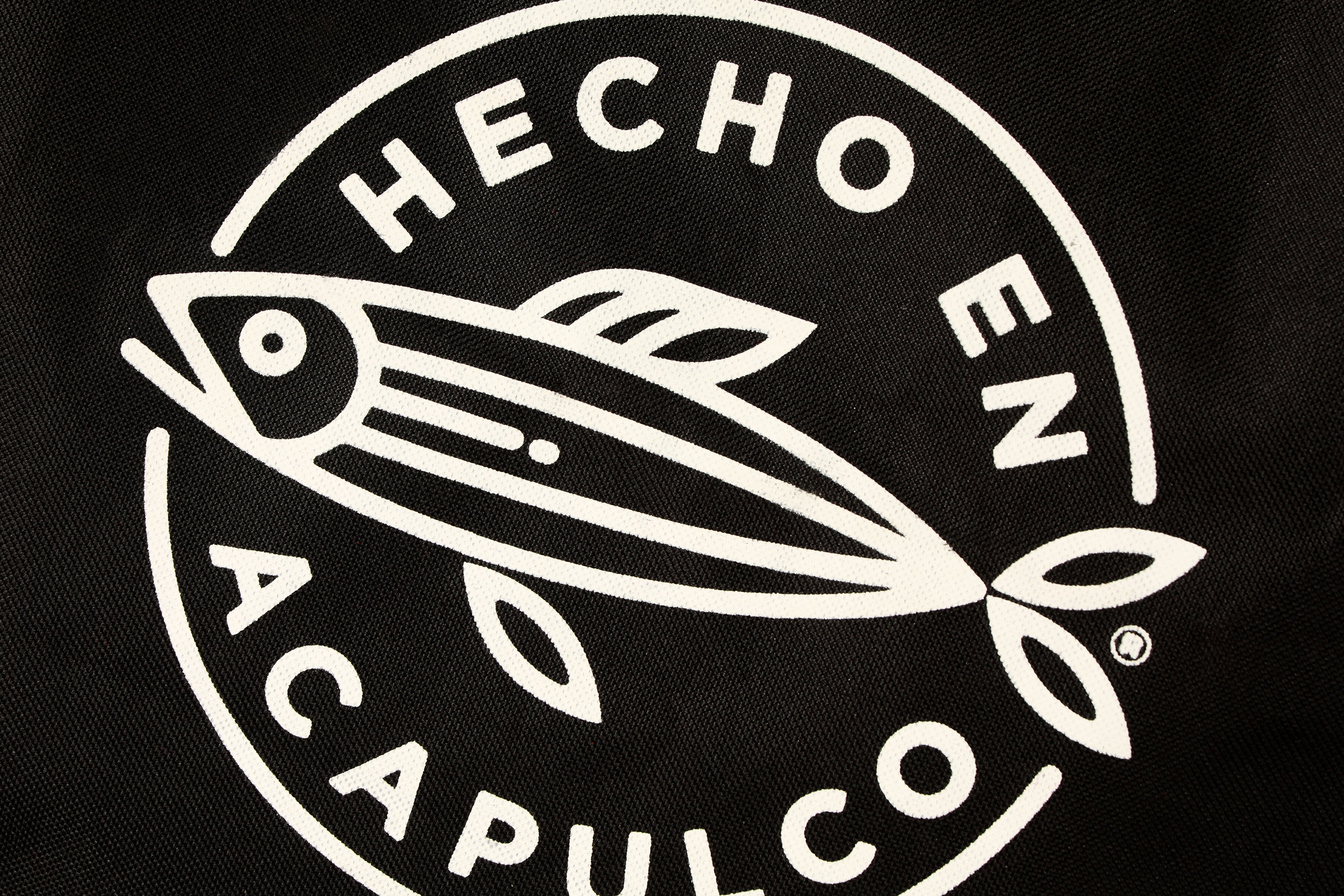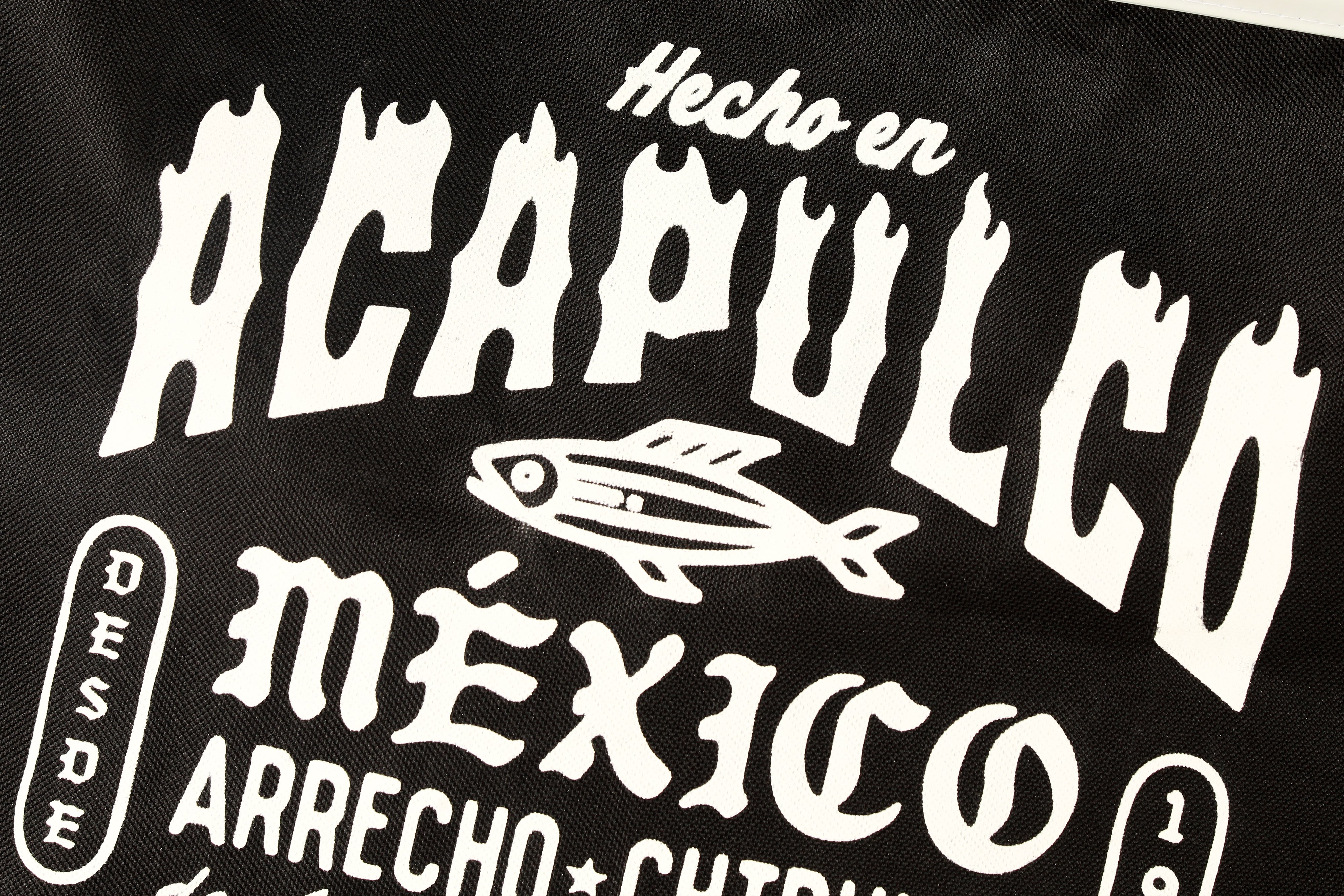 Diseñada en negro con impresión en alto contraste, inspirada en la gráfica tradicional mexicana, las tipografías populares de rótulo y el espíritu clásico de Acapulco. El lettering protagonista “Hecho en Acapulco” acompañado del pez y el sello “Desde 1985” le da esa vibra de marca con historia, de fonda legendaria frente al mar.