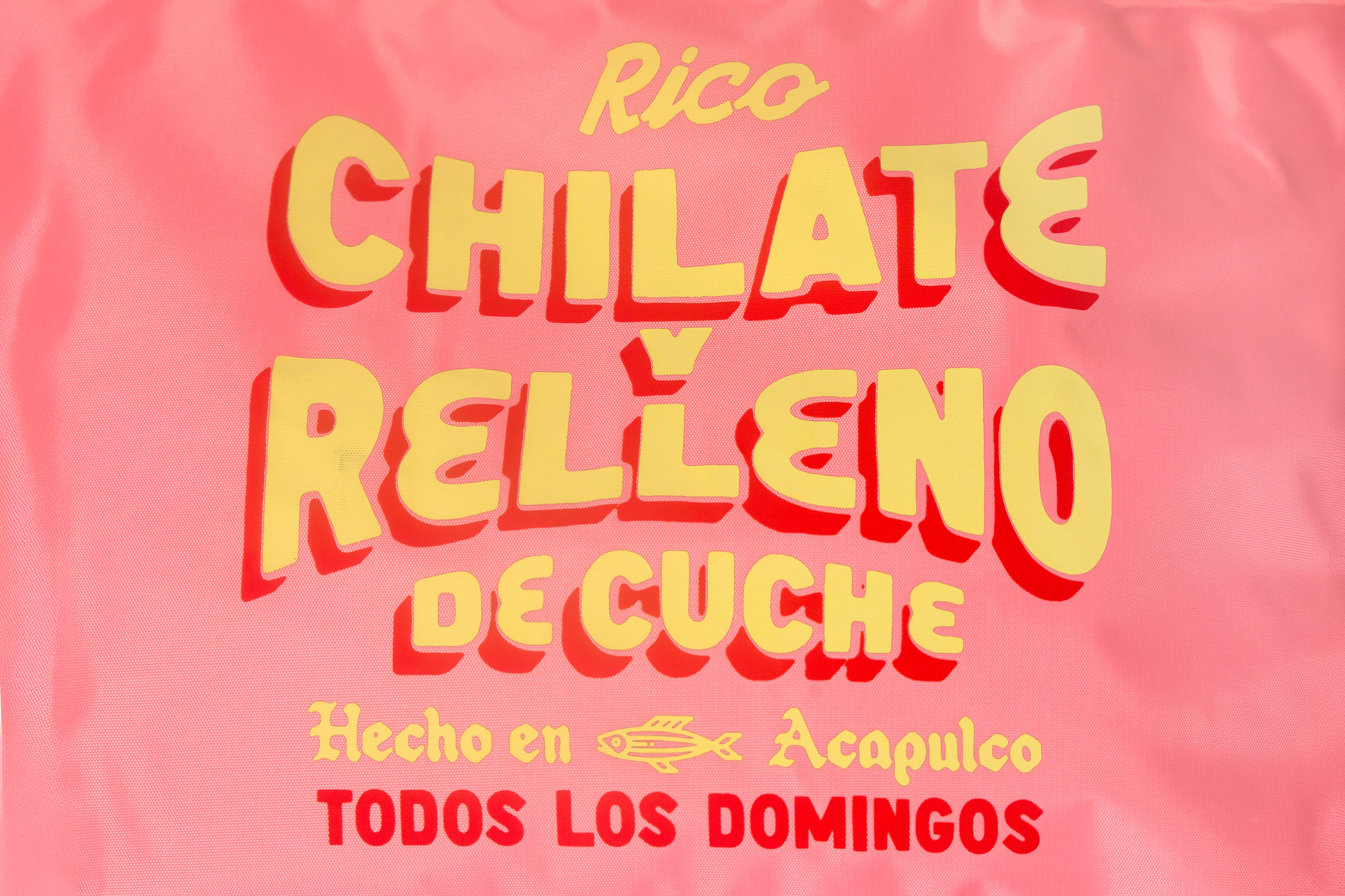 Diseño a todo color impreso frente y vuelta, con tipografía popular y vibra de fondita dominguera. Práctica, durable y fácil de limpiar. Hecha en Acapulco. Edición limitada diseñada por @eltavares
