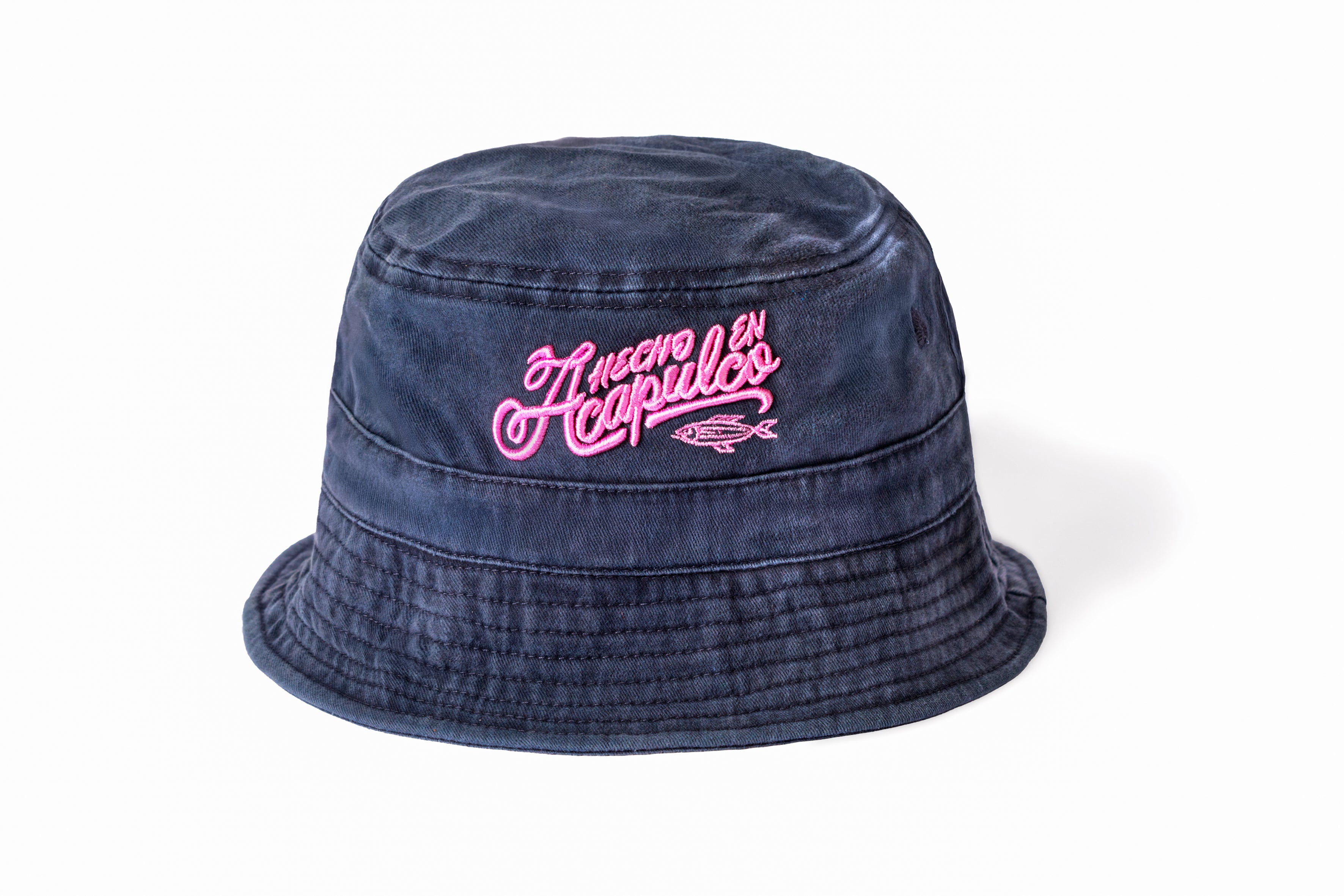 Al frente presenta bordado en color rosa con la frase “Hecho en Acapulco” y detalle gráfico, aportando un contraste llamativo y auténtico.