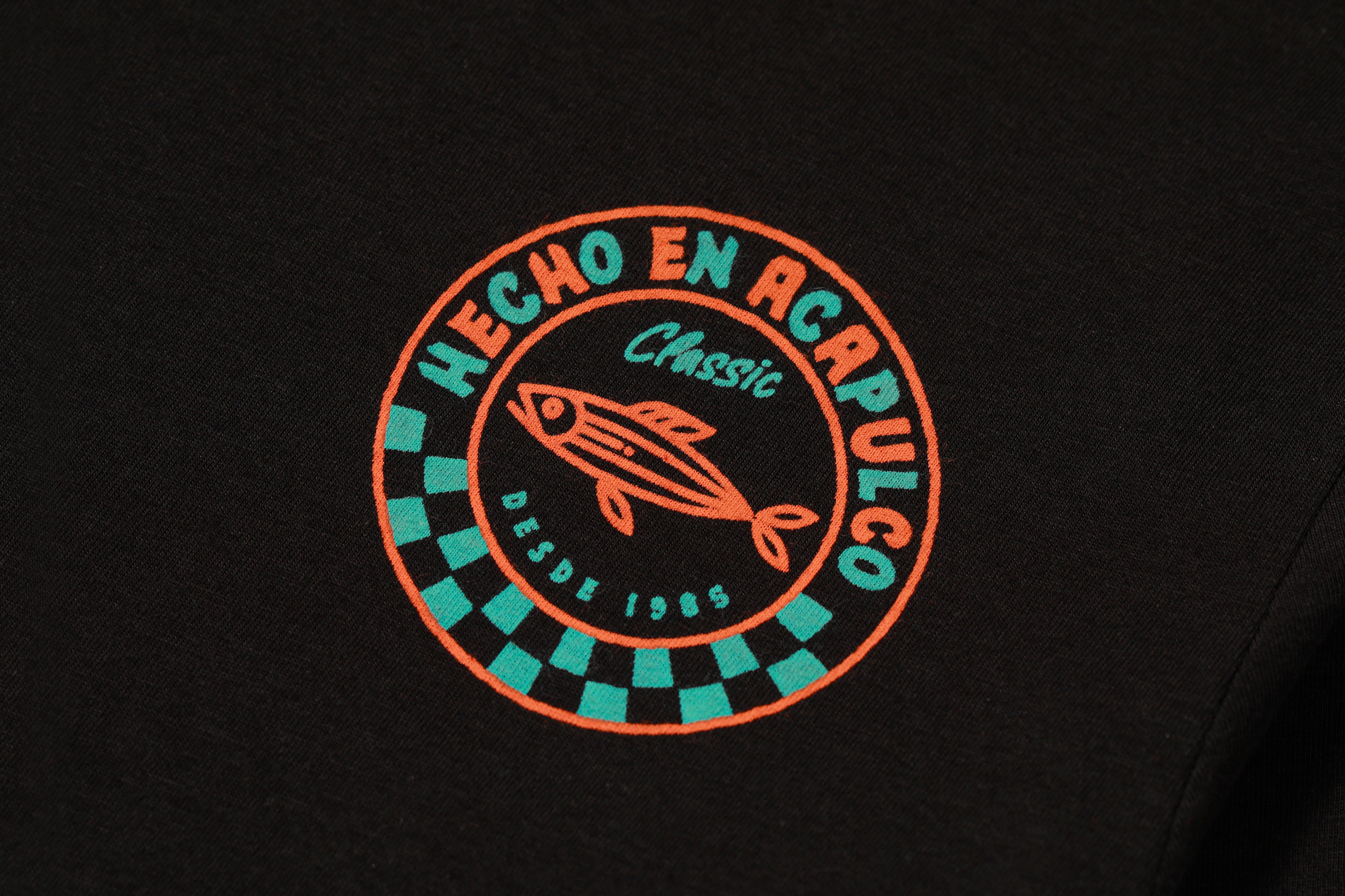 La playera Insignia del Puerto celebra la esencia clásica y atemporal del estilo costeño con un diseño tipo emblema que rinde homenaje al espíritu auténtico del puerto. Confeccionada en algodón 100% de 150 gramos, es ligera, cómoda y perfecta para el uso diario, con ese fit relajado que nunca pasa de moda. El diseño, creado por @eltavares, combina gráfica limpia y vibra retro en serigrafía a dos tintas al frente y dos tintas en la espalda, logrando un look equilibrado, fresco y con identidad. Una pieza que se siente como sello oficial de Hecho en Acapulco, inspirada en la energía clásica y eterna de Acapulco.