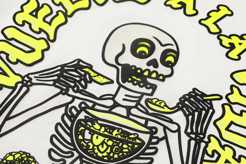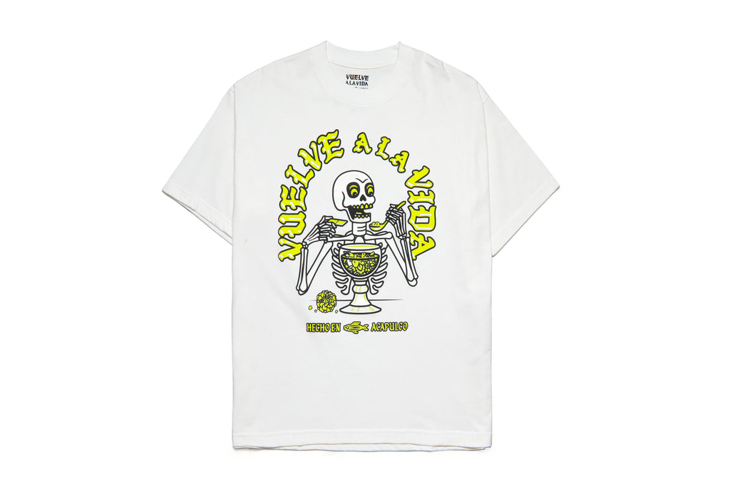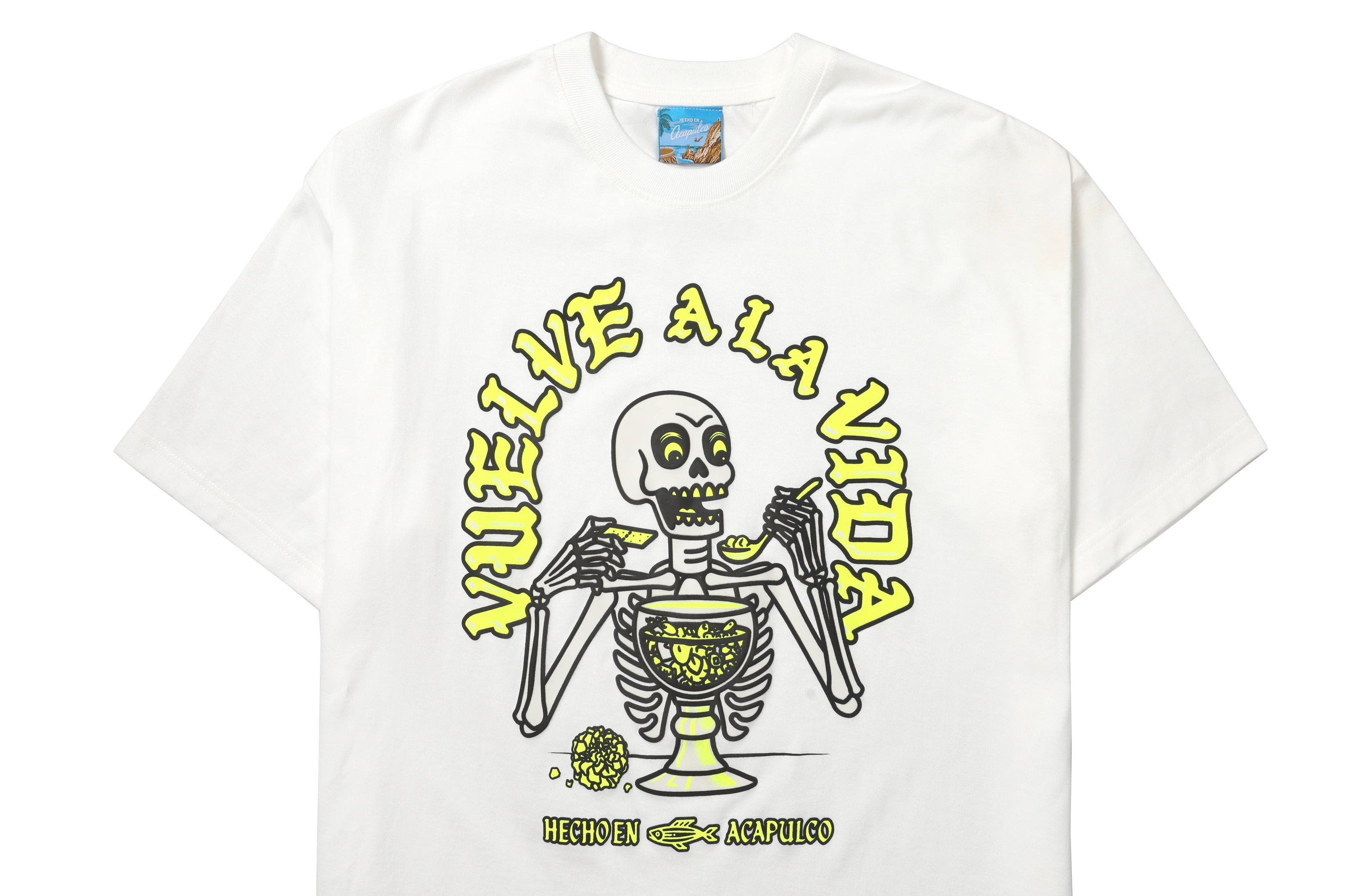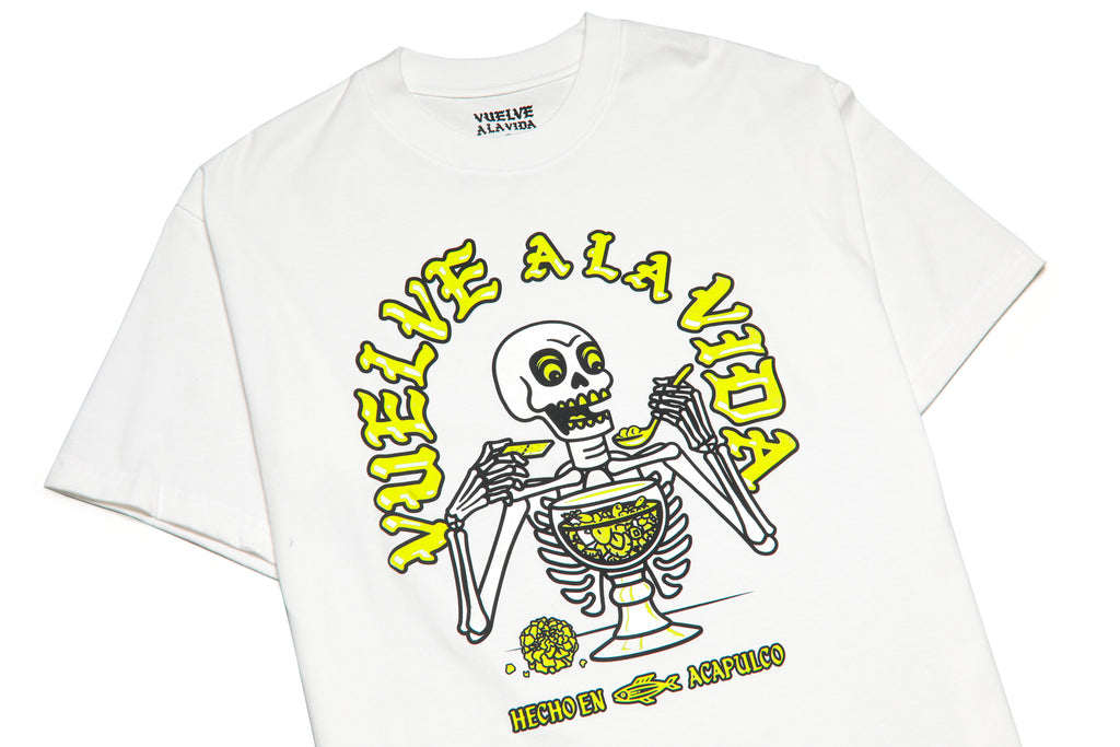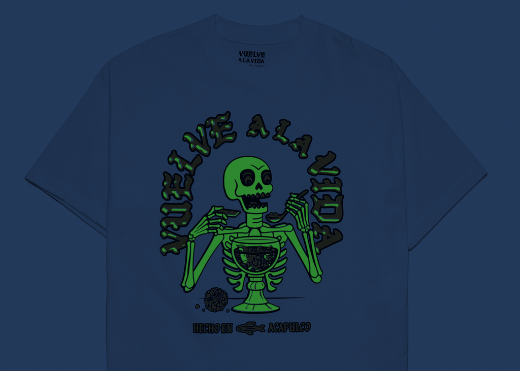 Playera Vuelve a la Vida, inspirada en el coctel de mariscos que te revive al andar crudo o cansado, impresión con tintas que brillan en la obscuridad sobre playera premium oversize 100% algodón. 3 Tintas frente y 1 en espalda. Diseñada x @eltavares