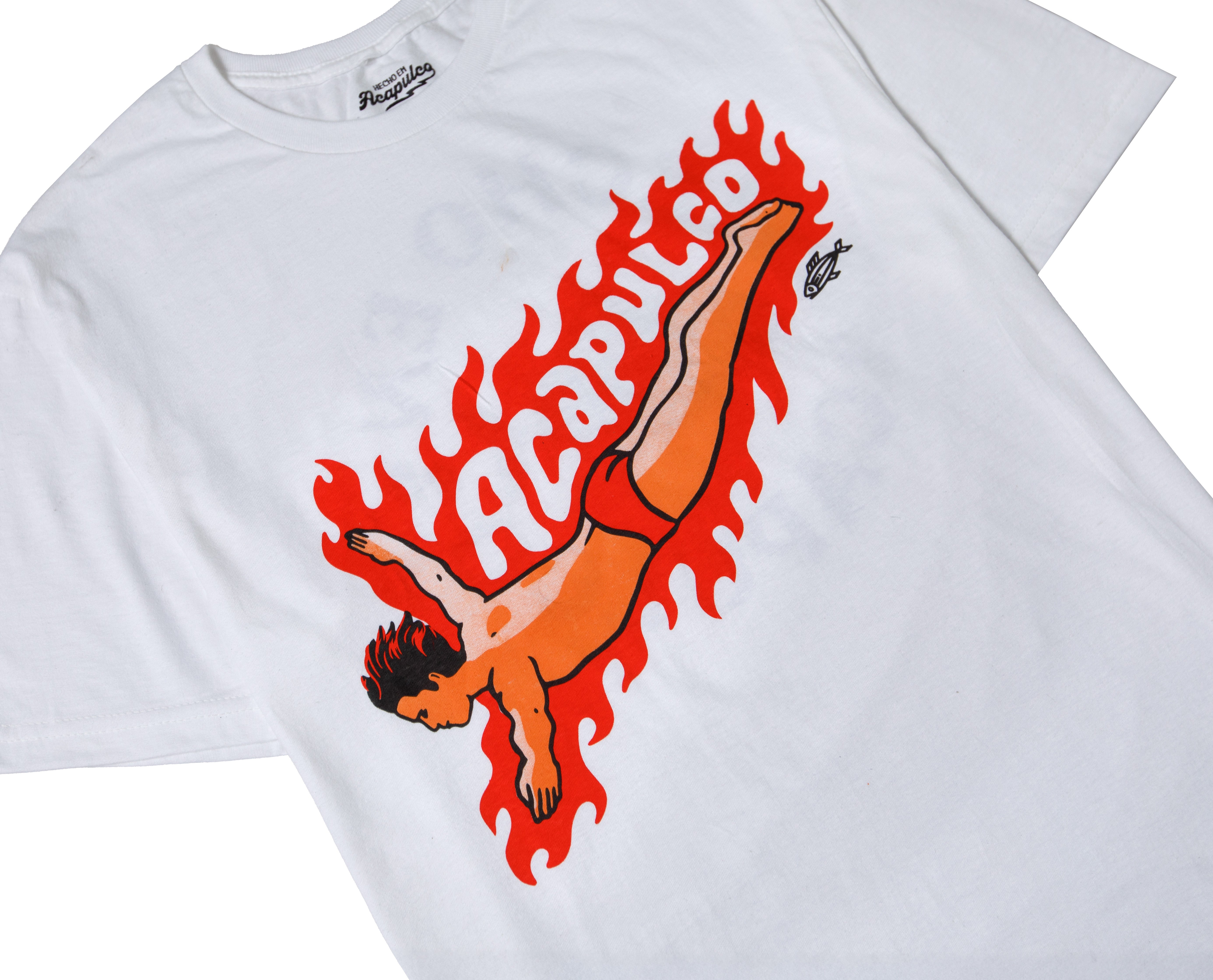 Playera clásica de Algodón Peinado ligero. Super suave en corte regular. Impresa en serigrafía frente y vuelta con tintas base agua imperceptibles al tacto. Diseñada por nuestro fundador @eltavares. Inspirada en los legendarios Clavadistas de La Quebrada.